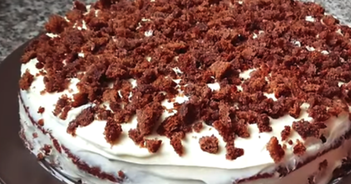 Kiedy ciasto się upiecze, odkładamy je w odpowiednie miejsce tak, aby się schłodziło. Po ostudzeniu się deseru odcinamy boki oraz górę, a całość dzielimy na dwie równe części. Jedną warstwę ciasta kładziemy na talerzu, smarujemy śmietaną i nakładamy na drugą.