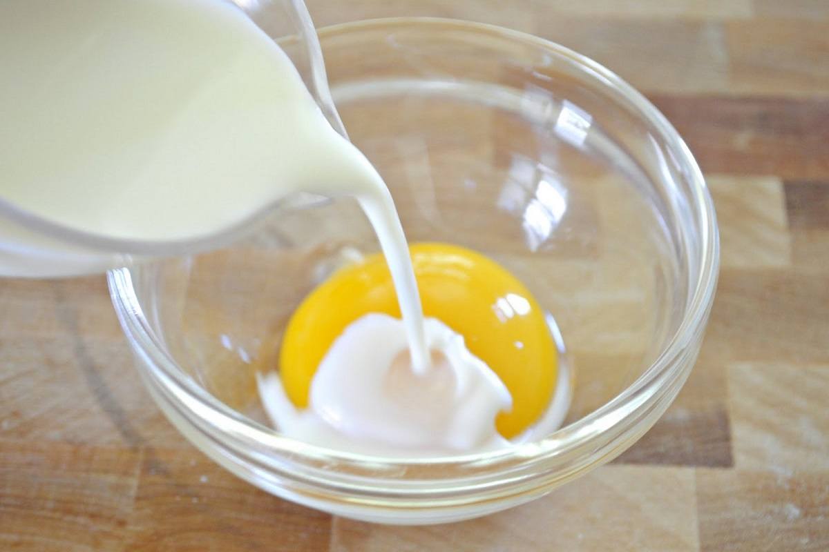 Ubij na sztywną pianę białka, a potem stopniowo dodawaj żółtka. Następnie powoli dolewaj niewielką strużką mleko, syrop i olej kokosowy.
