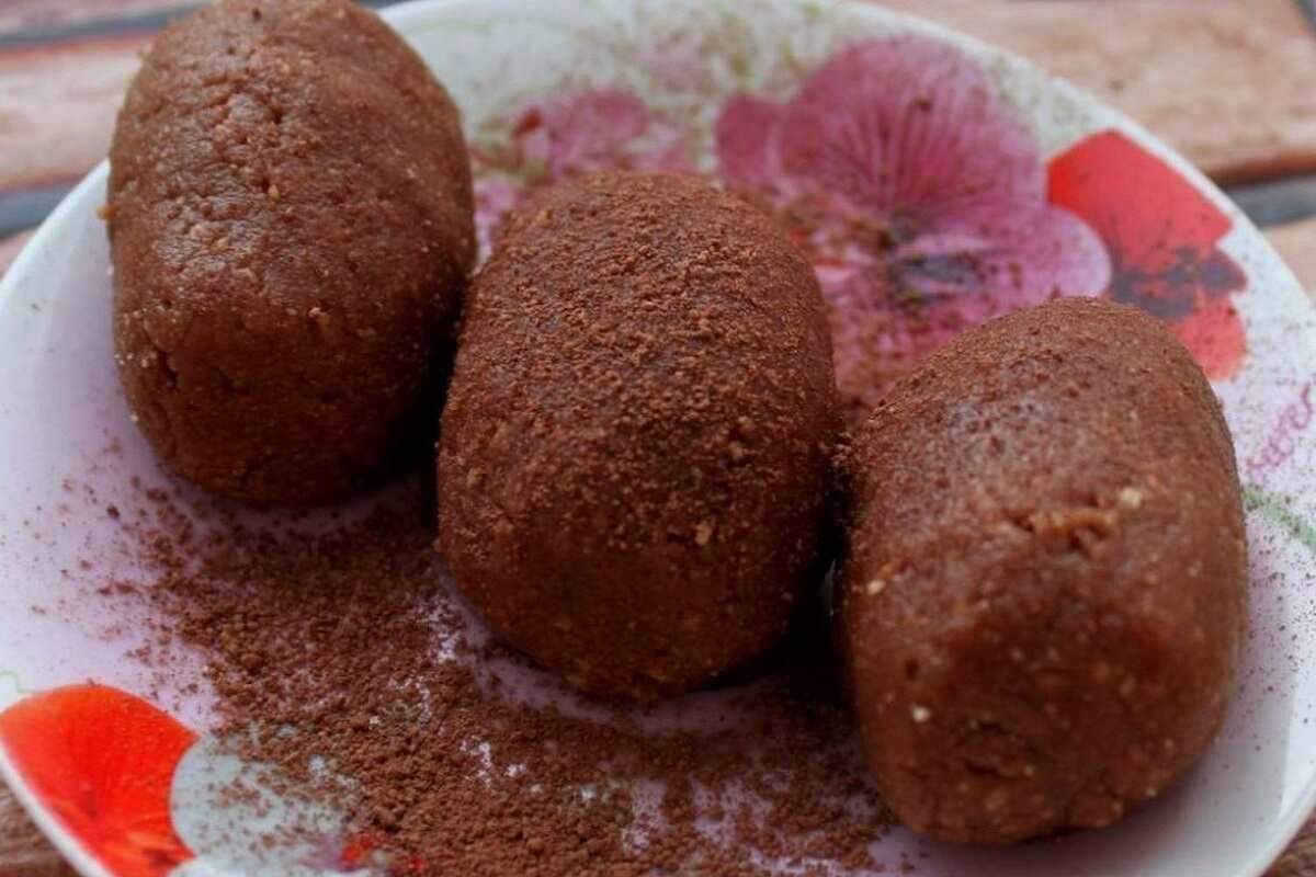 Ostudź ciasto i połam je na mniejsze kawałki. Dodaj do niego obrany i pokrojony banan i wszystko zblenduj na gładką masę. Uformuj w dłoniach kuleczki i obtaczaj w pozostałym kakao.