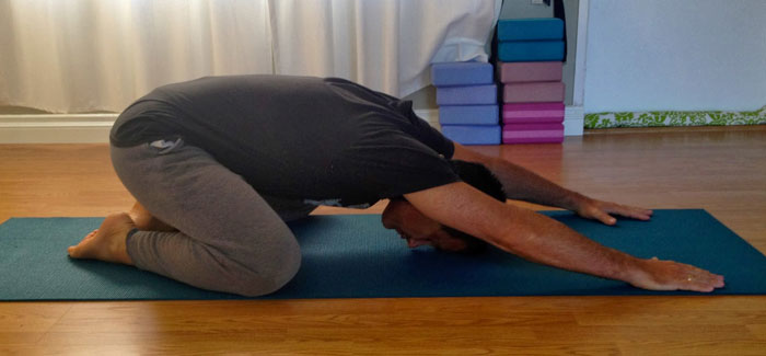 Ostatnim ćwiczeniem jest skłon. Usiądź na stopach i wyciągnij tułów z wyprostowanymi rękami przed siebie.