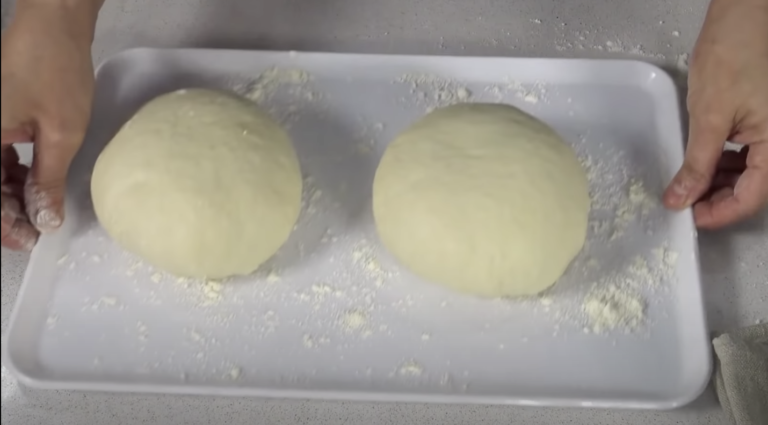 Następnie otrzymane ciasto dzielimy na 2 części i przykrywamy je ściereczką, aby nie wyschło. Odkładamy do wyrośnięcia, na około 30 minut w ciepłe miejsce.
