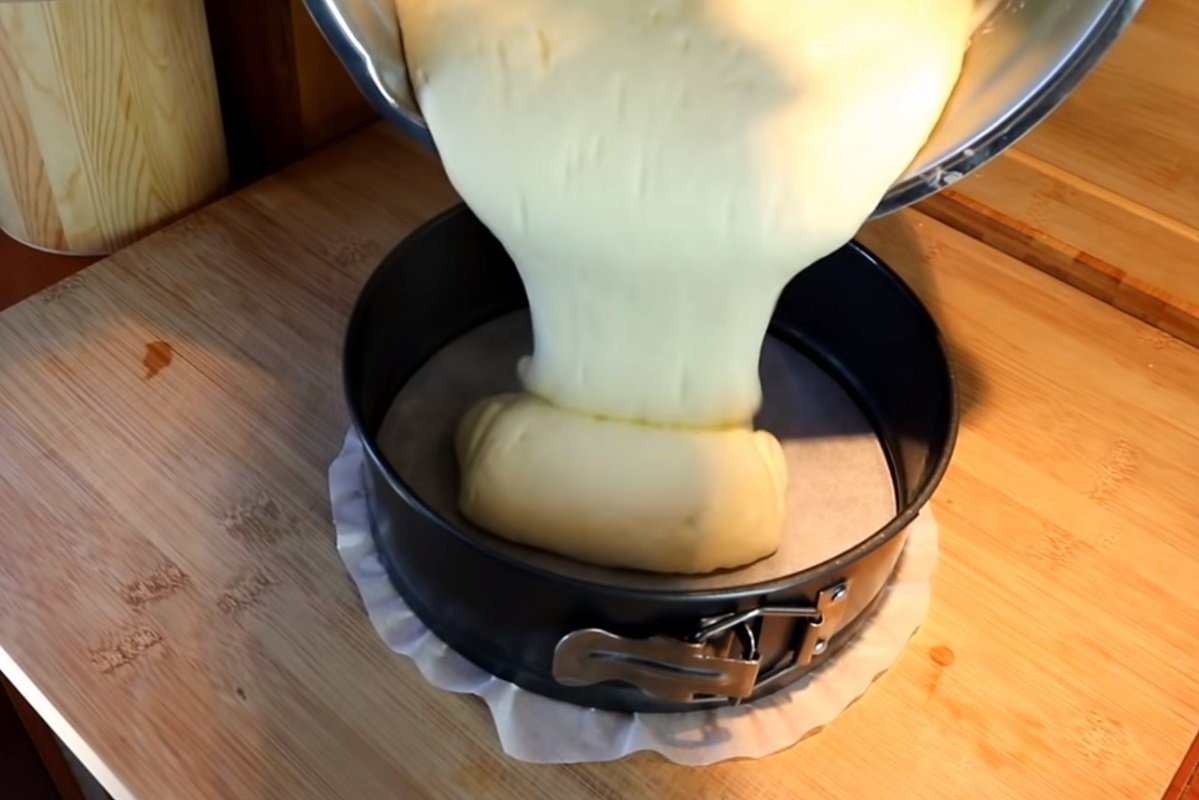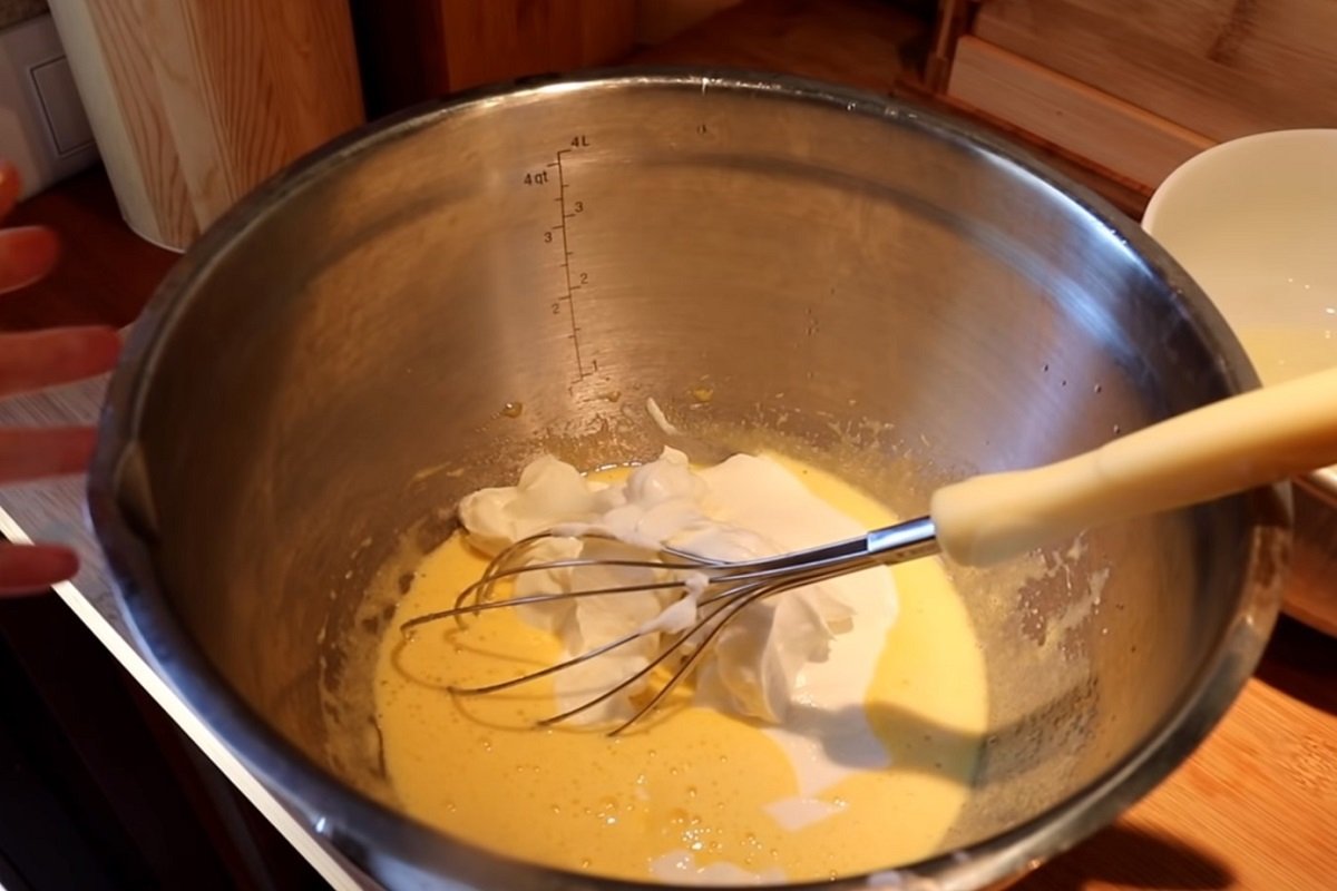 Oddzielić żółtka od jajek i ubić je z cukrem. Żółtka powinny być połączone z jogurtem i skrobią. Dobrze wymieszać do uzyskania gładkiej masy.