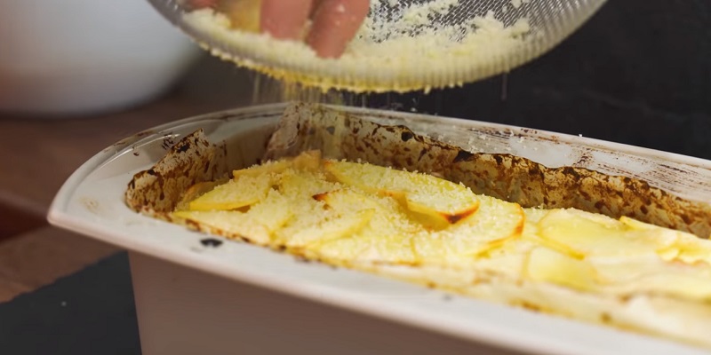 Nasmaruj prostokątne naczynie do pieczenia masłem i wyłóż je pergaminem. Rozmiar mojej formy to 10×22 cm. Zanurz plasterki owoców w cieście z obu stron.