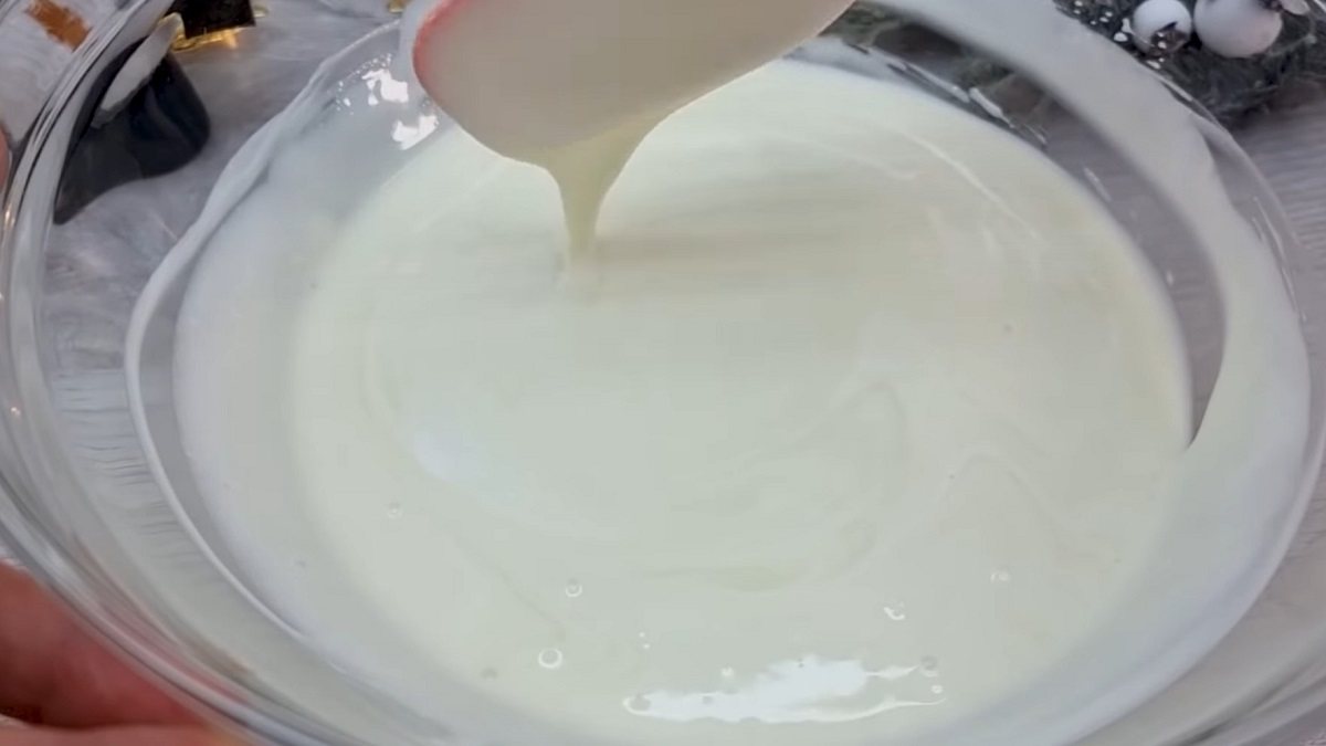 Śmietana powinna być w temperaturze pokojowej, dlatego warto wyjąć ją kilka godzin wcześniej z lodówki. Następnie należy dokładnie wymieszać ją ze skondensowanym mlekiem.