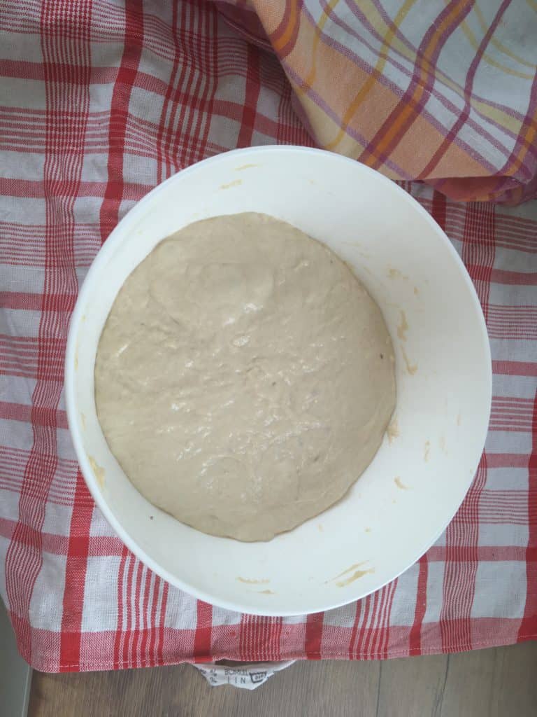 Wymieszaj drożdże, cukier i mleko, a następnie odstaw na około kwadrans. Posól startą cukinię i wyciśnij z niej sok. W misce wyrób ciasto z pozostałych składników. Dodaj drożdże i cukinię. Przykryj ciasto kawałkiem bawełnianej ściereczki.