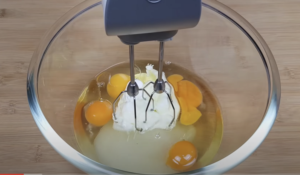 Następnie w innym naczyniu ubić jajka z olejem, śmietaną i cukrem. Kolejnym krokiem jest dosypanie masy, którą robiliśmy na początku i ubicie wszystkiego do gładkiej konsystencji.