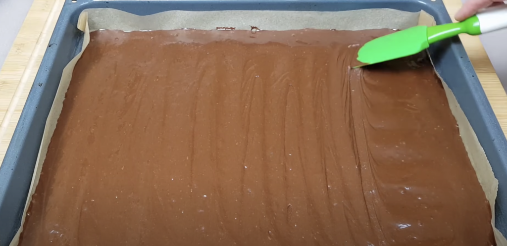 Wszystko przelewamy do formy, na którą wcześniej trzeba położyć papier do pieczenia. Rozgrzewamy piekarnik do 200 stopni i pieczemy od 12 do 15 minut. Pod koniec warto sprawdzić ciasto patyczkiem, czy na pewno jest gotowe.