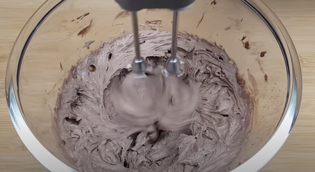 Przyszedł czas na krem. Mieszamy mikserem kakao, śmietanę, mleko skondensowane i twarożek.