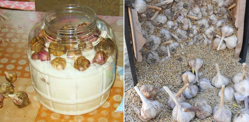 Powstały w ten sposób „przekładaniec” należy szczelnie zamknąć, aby czosnek na długo został smaczny i świeży. Sól można również zastąpić innymi składnikami, które skutecznie uchronią czosnek przed wilgocią – może to być np. zwykła mąka. Dawniej stosowano też popiół albo trociny czy ziarna zbóż.
