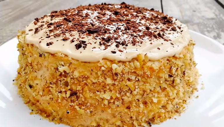 W końcowym etapie przygotowania na talerzu układamy naleśniki jeden na drugim, smarując każdy śmietaną i posypując orzechami i śliwkami. Ciasto wkładamy do lodówki na 3 do 4 godzin. Ostatnia czynność to posmarowanie wierzchu pozostałą śmietanką i posypanie czekoladą.