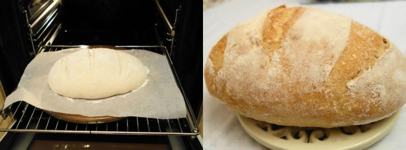 Nadaj ciastu kształt kulki, a następnie połóż je na papierze do pieczenia i pozostaw je na około 40 minut do godziny. W międzyczasie przygotuj piekarnik, rozgrzewając go do 235 stopni. Po upływie czasu natnij ciasto w 3 miejscach i włóż na środkowy poziom piekarnika.