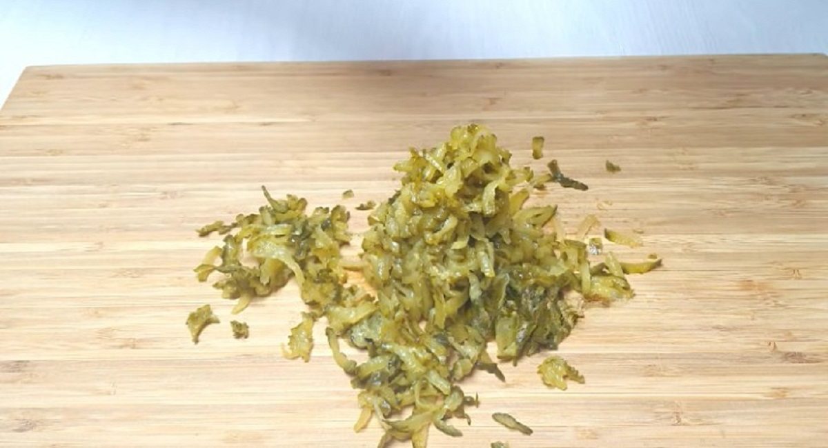 Ogórki kiszone zetrzyj na tarce i lekko podsmaż.