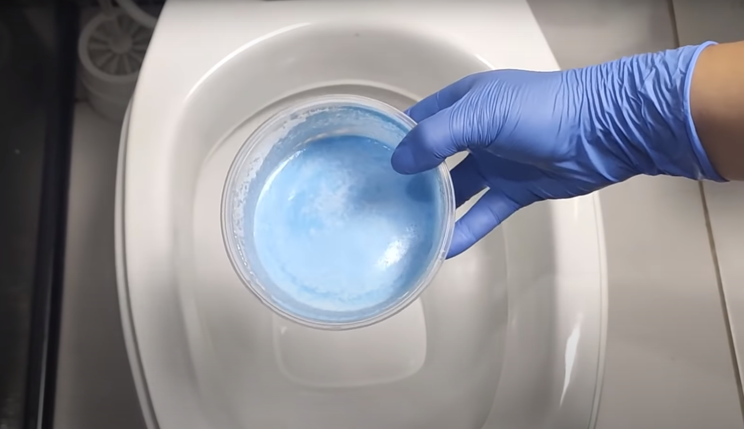 Powinna być lekko spieniona na powierzchni, dopilnuj aby proszek do prania dokładnie się rozpuścił. Następnie powstałą mieszaninę wlej do muszli klozetowej.
