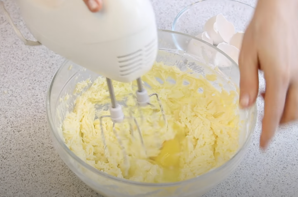 Za pomocą miksera ubij masło. Następnie dodaj proszek do pieczenia i sól. Następnie stopniowo dodawaj mąkę i mieszaj do uzyskania jednolitej masy.