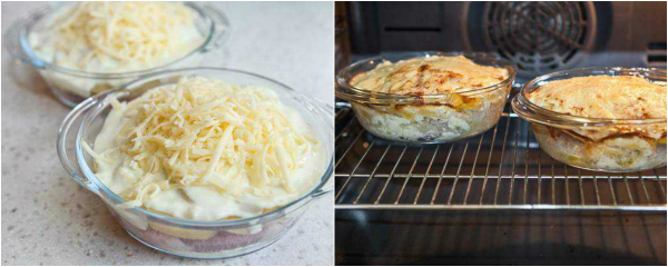 Wszystko polewamy obficie sosem a następnie posypujemy serem. Wszystko umieszczamy w piekarniku, rozgrzanym wcześniej do 200 stopni. Czas pieczenia dania to około 30-40 minut.
