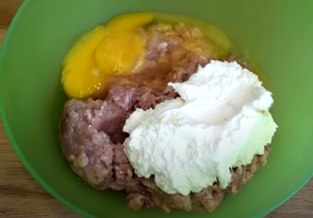 Mięso i jajka wrzuć do miski, a następnie dodaj do nich sól oraz pieprz. Twarożek wymieszaj w osobnej misce, w kolejnym kroku wszystko razem zmiksuj. Do mięsa dodaj startą na tarce cebulkę oraz przeciśnięty przez praskę czosnek. Wymieszaną z wodą bułkę tartą połącz z mielonym mięsem.