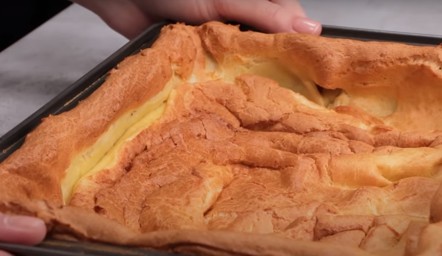 Kolejnym krokiem jest przełożenie ciasta do miski i wbicie jajek. Przygotuj sobie blaszkę o wymiarach 25 x 30 cm, ułóż na niej papier do pieczenia i nałóż ciasto. Należy piec w piekarniku, który jest nagrzany do 180 stopni przez mniej więcej 30 minut.