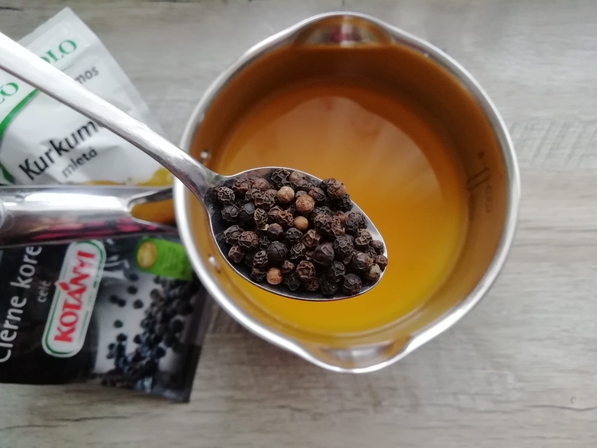 Dodajemy też do niego 3 goździki oraz pieprz – ten ostatni należy wcześniej zmielić lub zmiażdżyć w moździerzu.