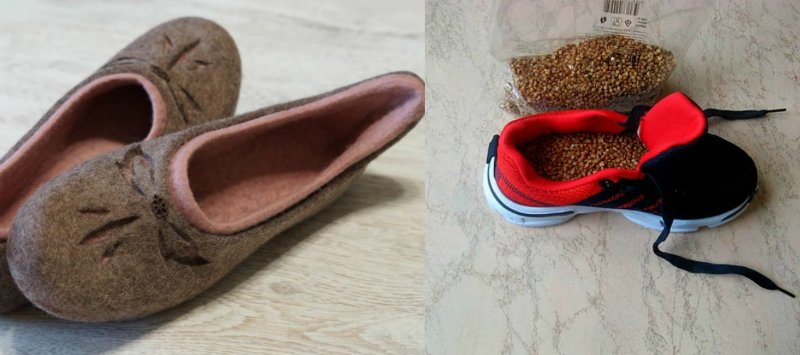Drugi pomysł na masaż, to wsypanie garści kaszy gryczanej do wygodnych butów typu trampki lub kapcie. Możemy zastosować tę metodę, gdy wychodzimy na spacer. Jest to wygodna metoda na peeling naszych stóp, a także świetny masaż leczniczy.