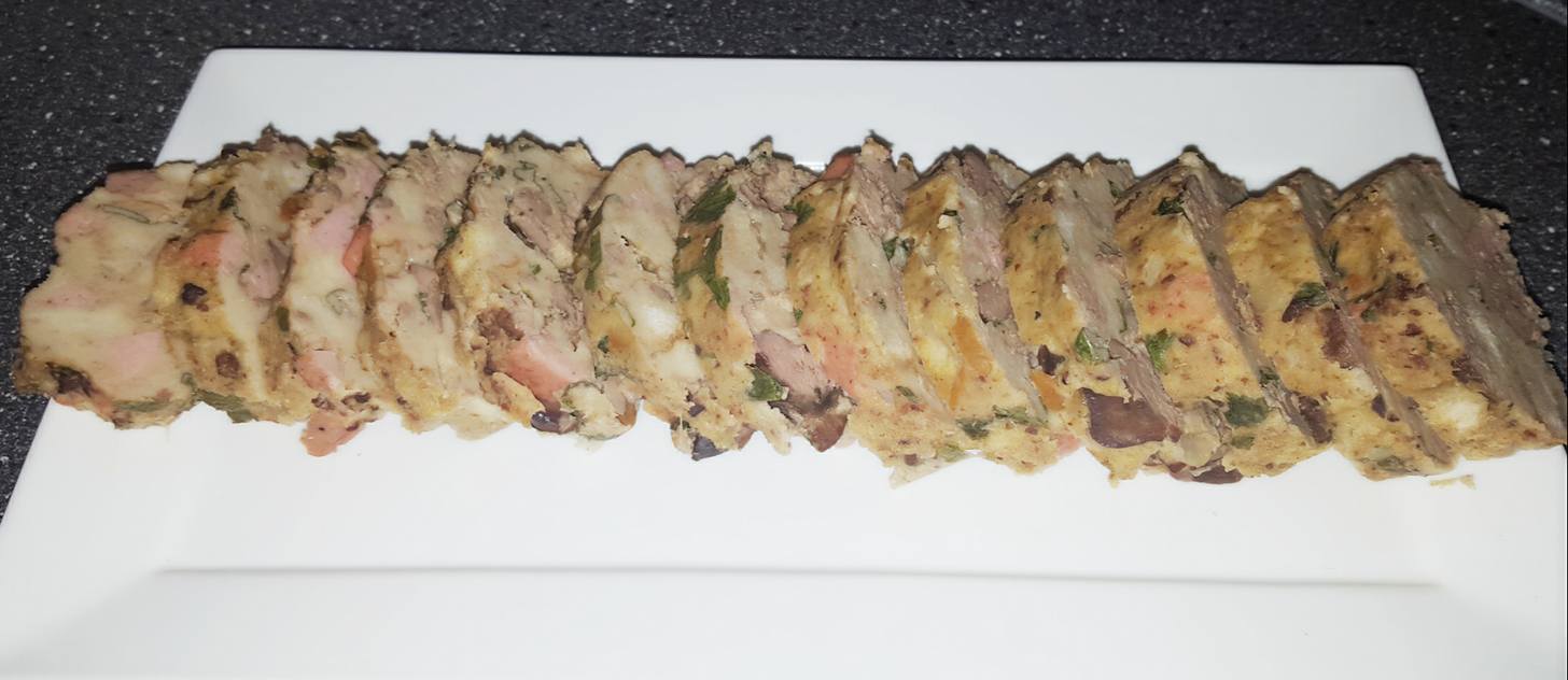Następnie wszystko dobrze zmiksuj i włóż do woreczka, zawiąż. Następnie woreczki owijamy folią spożywczą i umieszczamy w naczyniu do pieczenia z wodą. Gotuj na kuchence z każdej strony po 15 minut. Nie zakrywaj naczynia, bo spowoduje to pęknięcie woreczków z roladą. Gdy ugotujesz roladę ostudź ją.
