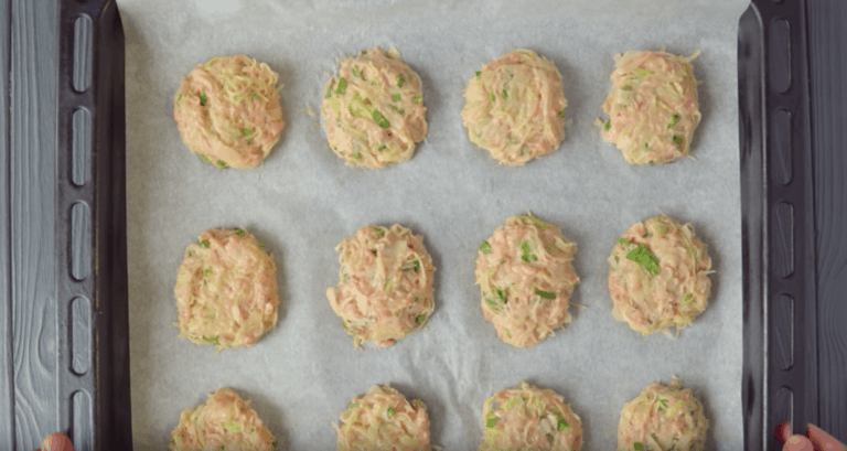 Z powstałej masy formujemy kotleciki. Umieszczamy je na papierze do pieczenia. Nastawiamy piekarnik na 200 °C. Po nagrzaniu piekarnika wsadzamy uformowane kotleciki na 30 minut. Czekamy, aż będą pięknie zarumienione.