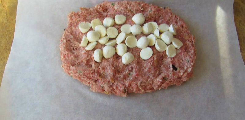 Rozłóż papier do pieczenia, na który wyłóż otrzymaną masę mięsną. Postaraj się zachować prostokątny kształt.