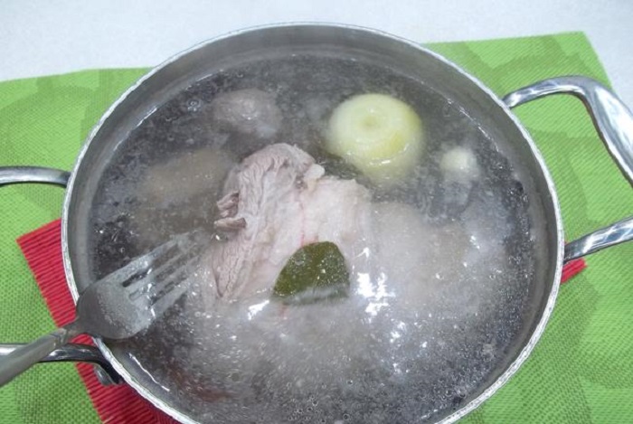 Do osobnej misji wlej 50 ml wody, ocet balsamiczny oraz sok z cytryny. Dodaj też majeranek, pieprz mielony, ostrą paprykę, sól, a także 3 łyżki cukru. Całość dokładnie wymieszaj. Obierz cebulę i pokrój je w kształt pierścieni. Ugotowane mięso wyjmij z wody, połóż na desce i pokrój w plastry.