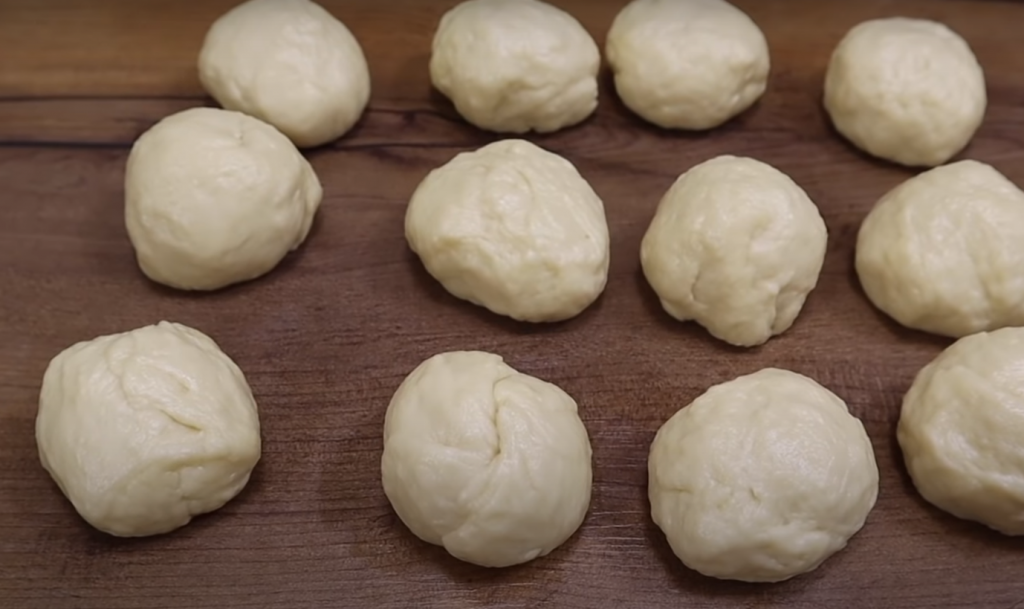 Przełóż ciasto na blat lub stolnicę i uformuj z niego podłużny wałek. Podziel go równomiernie na mniejsze kawałki i z każdego z nich uformuj kuleczki.