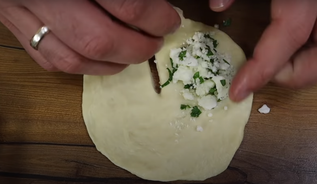 Nałóż nadzienie i zawiń bułki w stronę nacięcia, tak by farsz pozostał w środku. Blachę wyłóż papierem do pieczenia i przełóż na niego bułki.