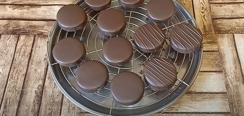 Z masła i czekolady gorzkiej przygotuj polewę. Ciasteczka z masą zanurzaj po kolei w polewie i odkładaj na kratkę. Możesz je udekorować drobno posiekanymi orzechami, wiórkami kokosowymi, albo zygzakami z mlecznej czekolady.