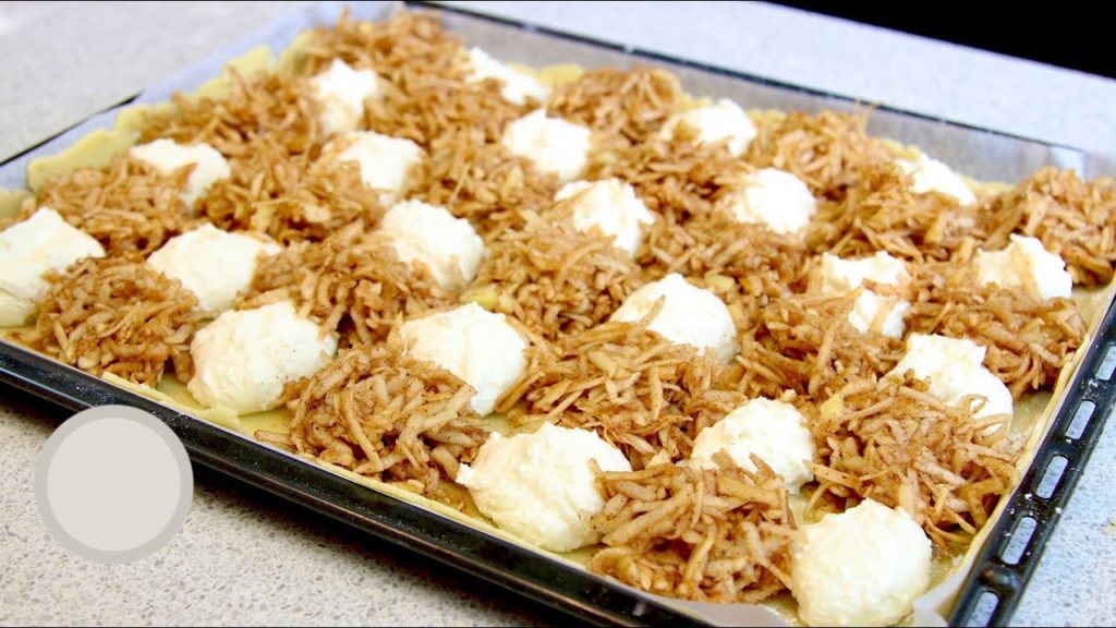 Najlepsza szarlotka jaką jadłam. Ścieram 4 jabłka, układam je na cieście razem z twarogiem i przykrywam: Oto przepis