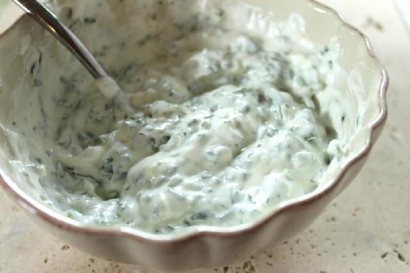 Wystarczy wymieszać kubeczek jogurtu naturalnego z przeciśniętym przez praskę czosnkiem.
