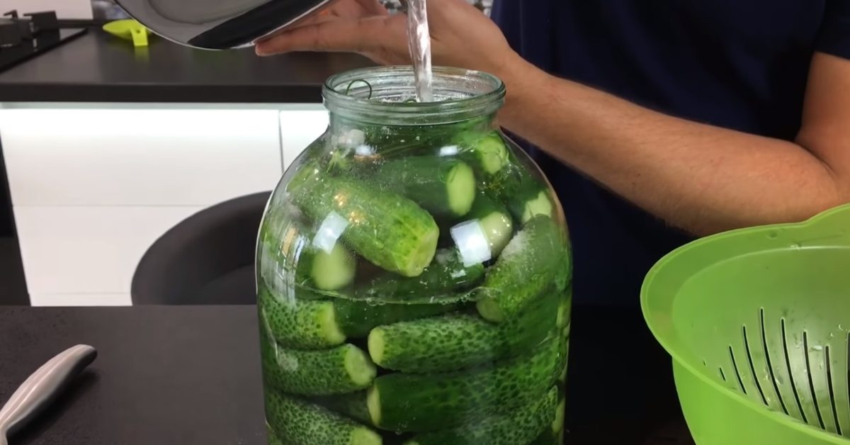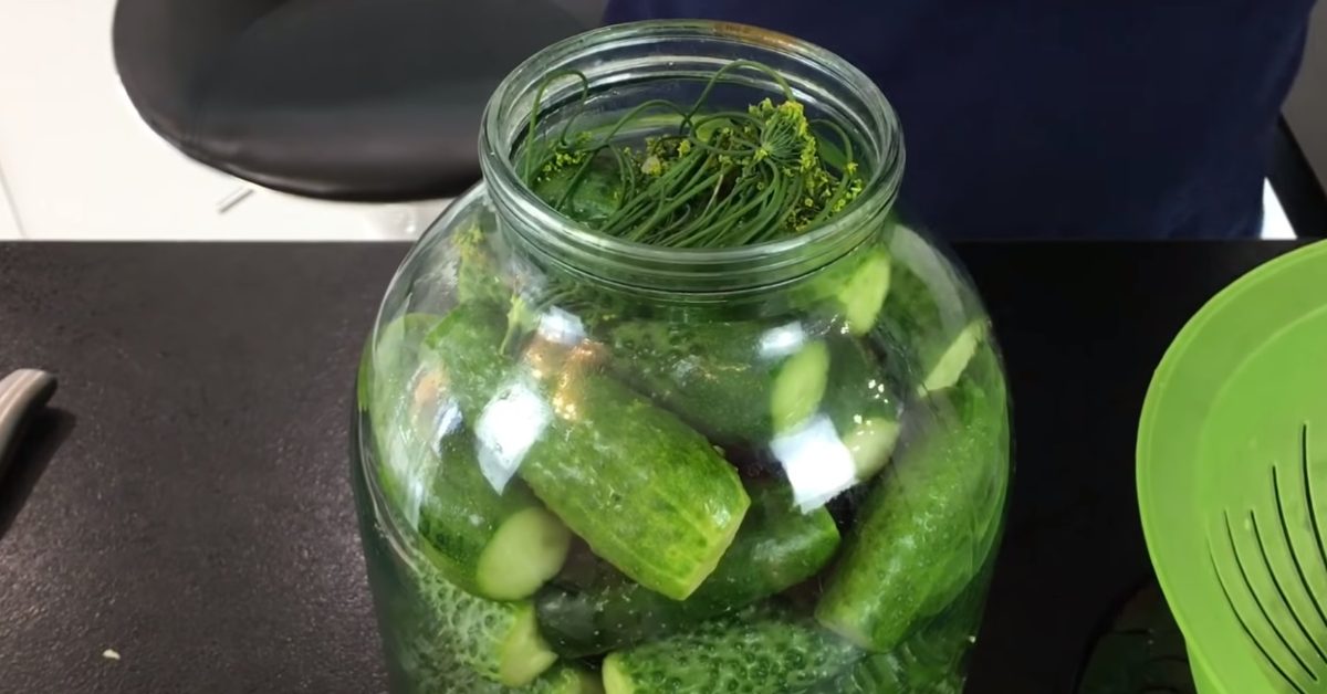 Na czosnek i koper połóż delikatnie ogórki najciaśniej, jak jest to tylko możliwe. Na samą górę połóż pozostawione dwie parasole kopru i posyp solą. Następnie zagotuj wodę i zalej całość.