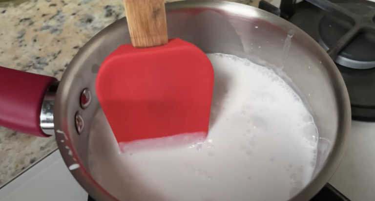 Najpierw należy wlać mleko kokosowe do rondelka i podgrzać je do odpowiedniej temperatury.