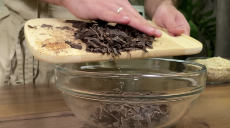 W między czasie możemy zająć się czekoladą i drobno ją posiekać.