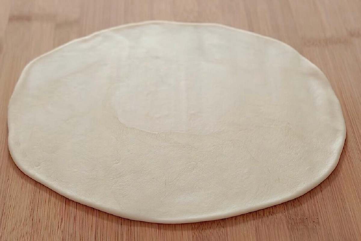 Po upływie godziny wyjmij ciasto i rozwałkuj je na cienki okrągły arkusz.