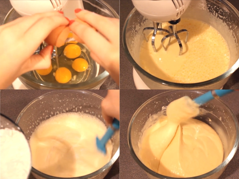 Jajka wbij do miski i dodaj do nich gorącą wodę. Ubijaj do momentu pojawienia się pęcherzyków powietrza. Następnie dodaj cukier i ubijaj dalej, aż masa nieco zgęstnieje.