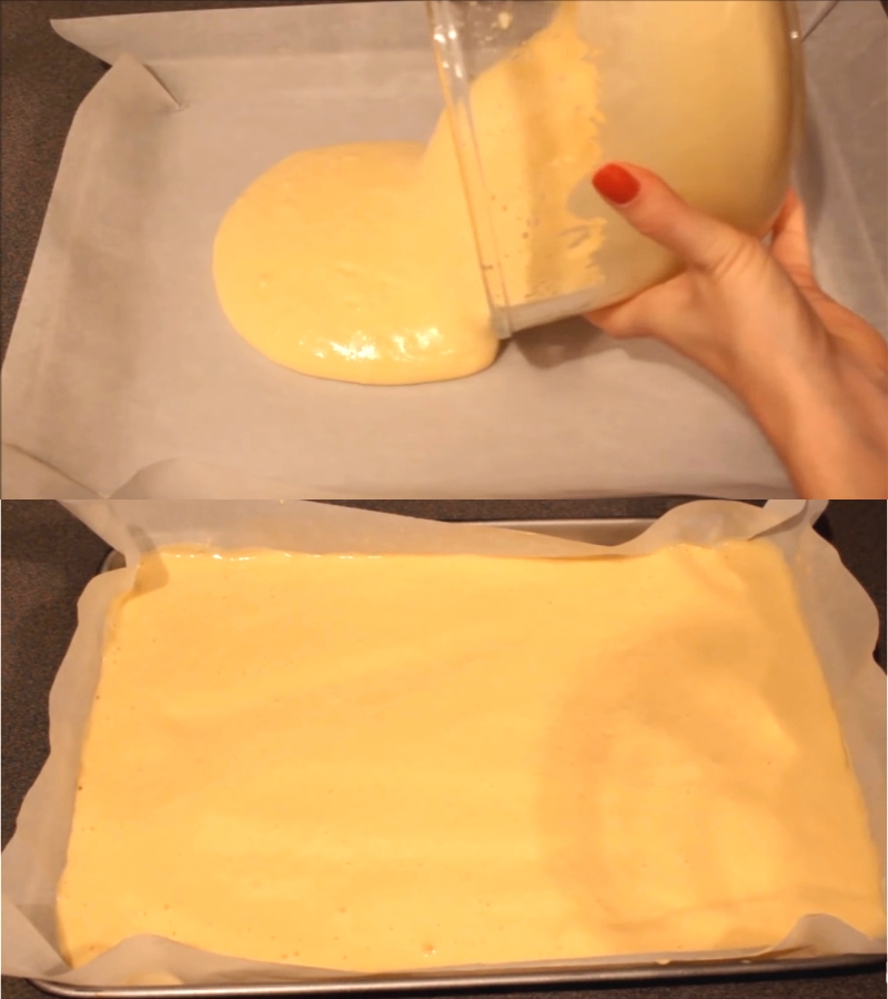 Odłóż mikser. Wsyp do masy jajecznej mąkę pszenną, ziemniaczaną oraz proszek do pieczenia. Mieszaj dokładnie łyżką. Aby łatwiej się mieszało, mąkę można dodawać stopniowo. Połóż na blachę papier do pieczenia. Aby papier dobrze przylegał do blachy, wysmaruj ją wcześniej masłem. Na tak przygotowaną blachę wylej ciasto. Wsadź do nagrzanego piekarnika do 180 stopni na 12 minut.