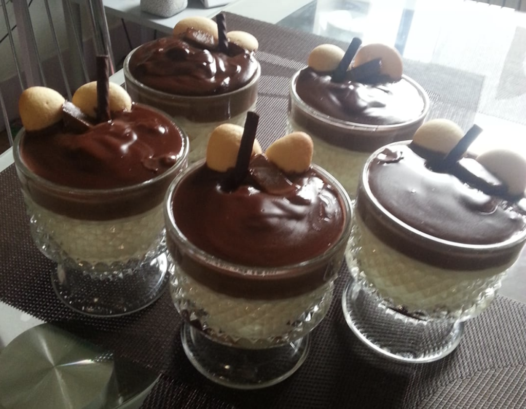 Kolejnym krokiem jest umieszczenie na dnie kubków wybranych owoców, na przykład bananów. Później na owoce należy wlać masę serową. Następnym krokiem jest przygotowanie polewy.