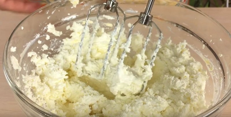 Zmiksuj twarożek w misce. Możesz dodać cukier lub wanilię do smaku. Wymieszaj razem herbatniki i orzechy, a następnie dodaj do nich twarożek i wymieszaj.