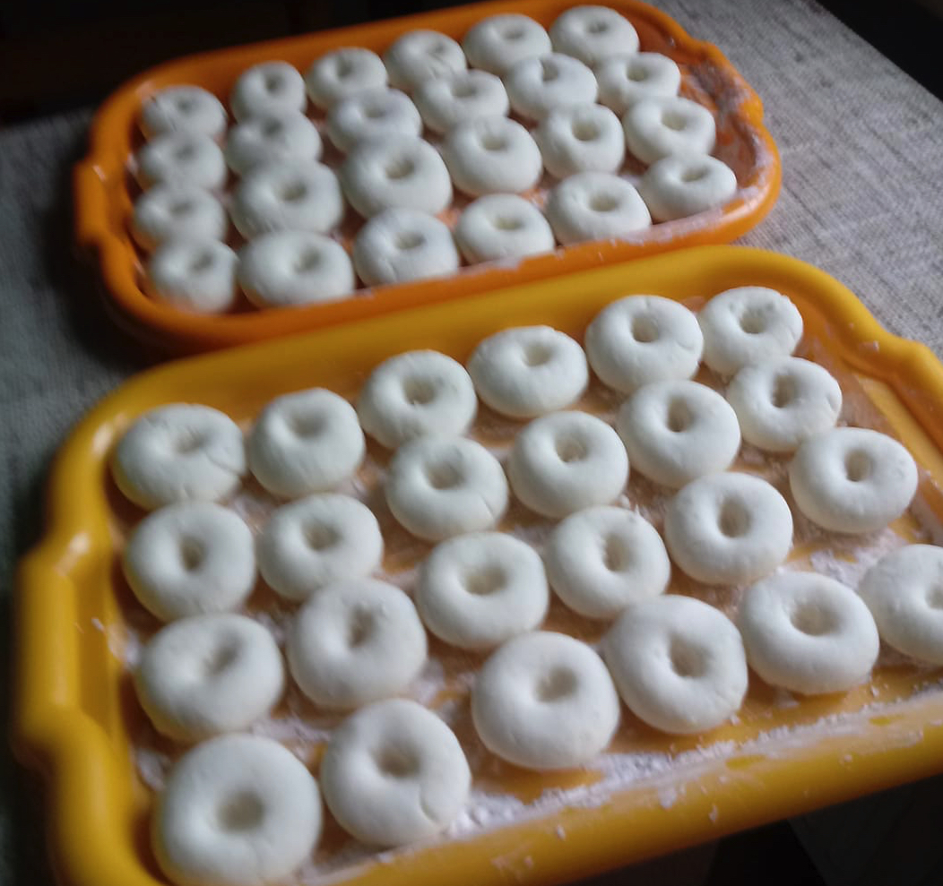 Ziemniaki wrzucamy do garnka z wodą, wsypujemy sól do smaku i gotujemy do miękkości. Ugotowane ziemniaki wyciskamy przez praskę lub dokładnie ubijamy przy użycia tłuczka. Tworzymy z ziemniaków kulę i dzielimy ją na 4 części. Jedną z nich odkładamy.