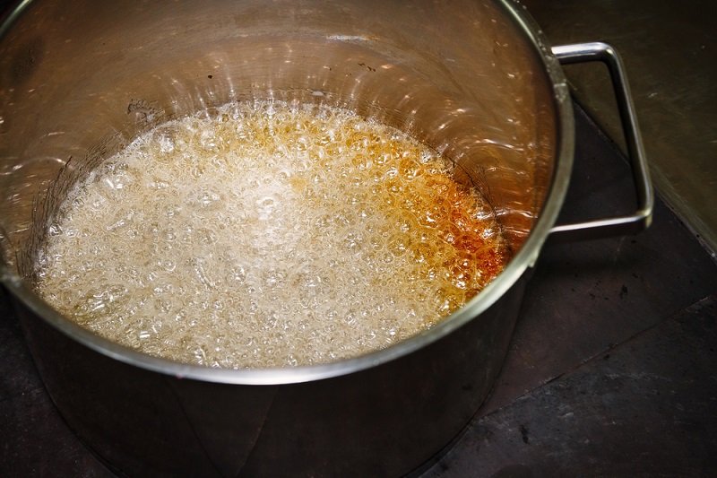 Śliwki dobrze umyć i usunąć pestki. Cukier i wodę zagotować, aż powstanie syrop. Włożyć do niego śliwki i gotować na małym ogniu przez około pół godziny. Następnie wyjąć owoce z roztworu. Można to zrobić za pomocą łyżki lub łyżki cedzakowej. Cały czas mieszaj syrop, aż zgęstnieje.