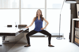 Ćwiczenie pozwoli wzmocnić pośladki oraz uda. Stań w rozkroku, a następnie wykonuj balansowanie góra-dół. Powtórz ćwiczenie 20 razy, jeżeli okaże się to zbyt trudne zmniejsz ilość powtórzeń, z biegiem czasu będziesz w stanie zrobić większą ilość serii.