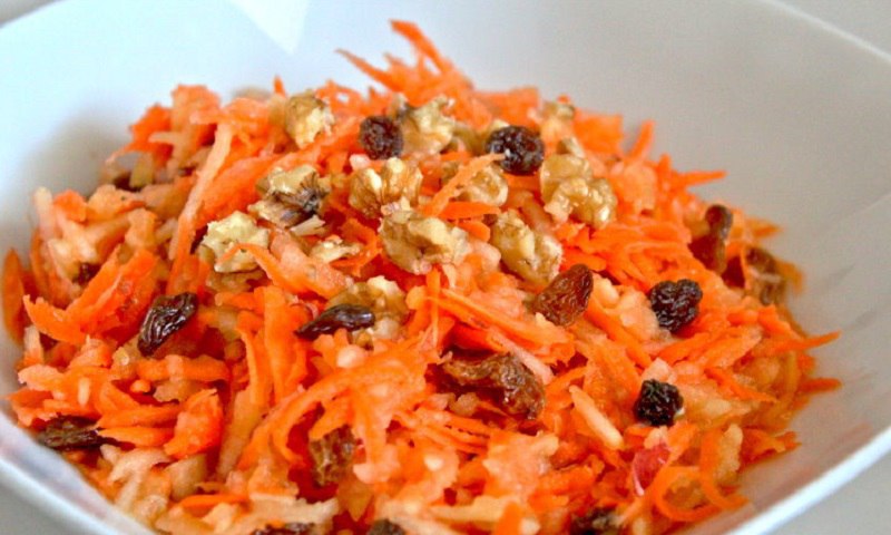 Surówka ze słodkiej marchewki z rodzynkami