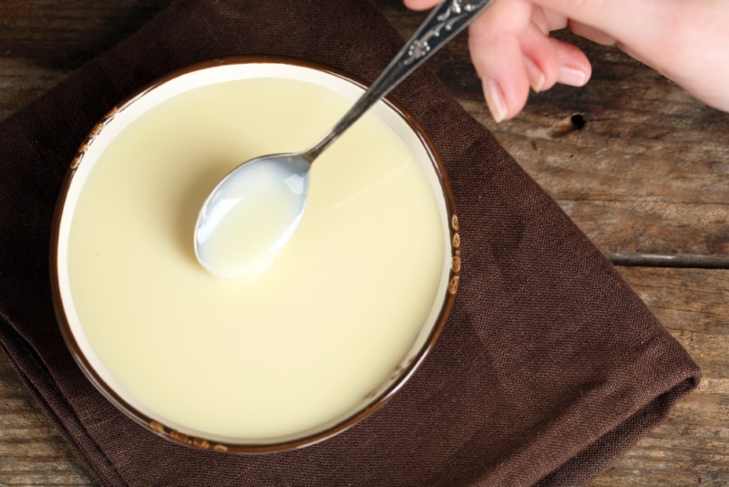 W tym czasie rozpuść żelatynę (wystarczy ok. 20 g) w 50 ml wody. Odczekaj kilka minut, aż napęcznieje. Żelatynę należy rozpuścić dowolnym sposobem i zmieszać ze skondensowanym mlekiem. Tak powstanie zaprawa do galaretek.
