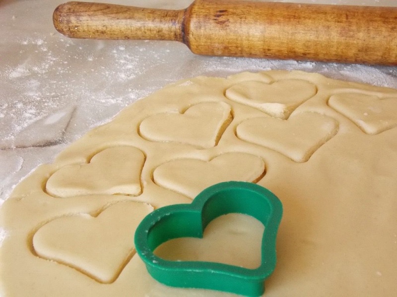 Ciasto rozwałkuj na grubość około do 1 cm (uważaj, żeby nie było za cienkie). Za pomocą szklanki lub wybranej foremki wykrój ciasteczka.