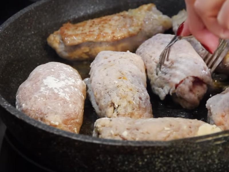 Wstaw je do miski i dodaj do nich koperek, sól, pieprz, cukier oraz ocet i odstaw na 10 minut. Po upływie czasu wyjmij zarówno mięso jak i cebulę i na każdy kawałek mięsa połóż cebulkę, a następnie zawiń całość w roladę. Całość smaż do momentu, aż mięso nabierze złocistego koloru.