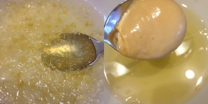 Żelatynę należy wlać do szklanego czy też ceramicznego pojemniczka, a następnie zalać ją gorącą, jednakże niewrzącą wodą. Wymieszać do dokładnego rozpuszczenia, aby niepowstały jakiekolwiek grudki.