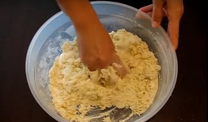 Powstałą mieszaninę, pozostaw w ciepłym miejscu na około pół godziny. Przygotuj dwie miski. Do pierwszej miski, powoli przesiewaj mąkę przez sito, dodaj do niej sól i cukier. Dokładnie wymieszaj. Do drugiej miski, przełóż miękką margarynę (lub masło), wsyp zawartość pierwszej miski do drugiej.