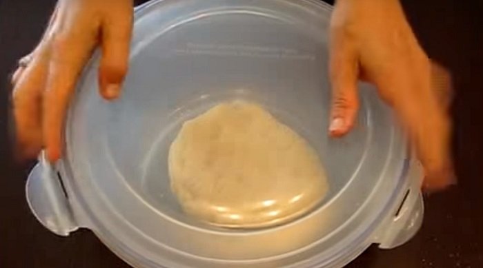Po ugnieceniu przykryj i pozostaw w takiej formie na 15 minut. (ważne, gdyż w tym czasie mąka, wchłonie wilgoć a co za tym idzie- wyrabianie ciasta stanie się o wiele łatwiejsze).